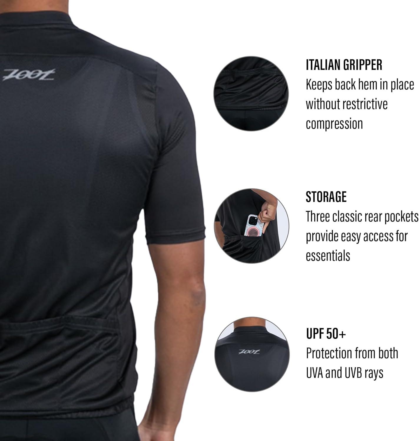 Zoot Men's Core Cycling Jersey, Breathable Short Sleeve Road Bike Tri Jersey, Moisture Wicking, 3 Rear Pockets, UPF 30 Fabric(Jet Black)