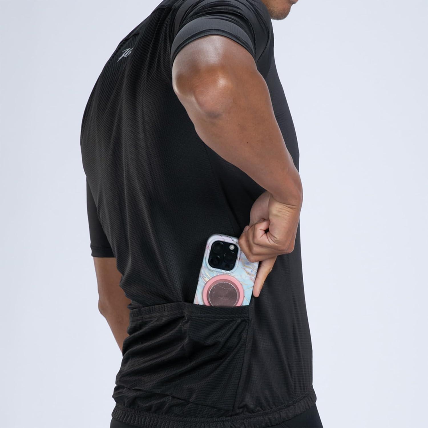 Zoot Men’s Core Cycling Jersey, Breathable Short Sleeve Road Bike Tri Jersey, Moisture Wicking, 3 Rear Pockets, UPF 30 Fabric(Jet Black)
