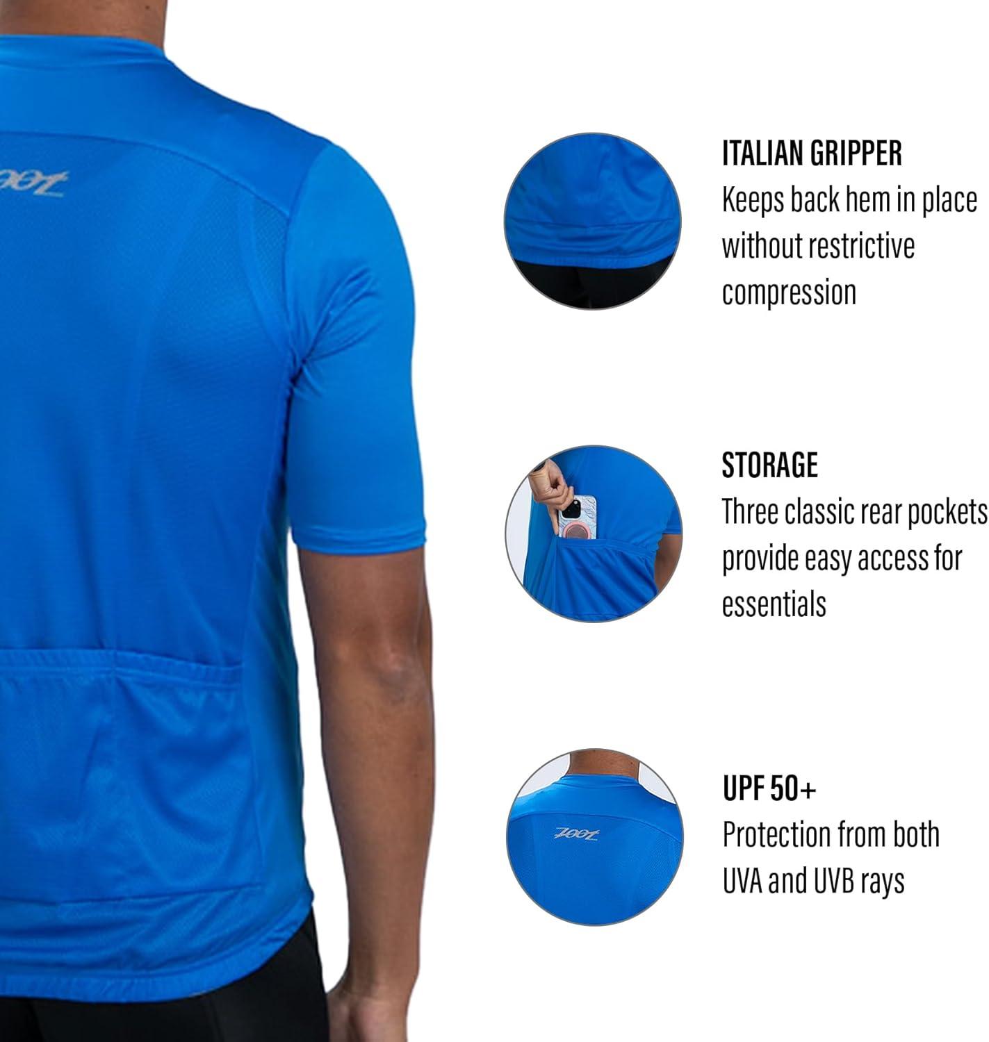 Zoot Men’s Core Cycling Jersey, Breathable Short Sleeve Road Bike Tri Jersey, Moisture Wicking, 3 Rear Pockets, UPF 30 Fabric(Ocean Blue)