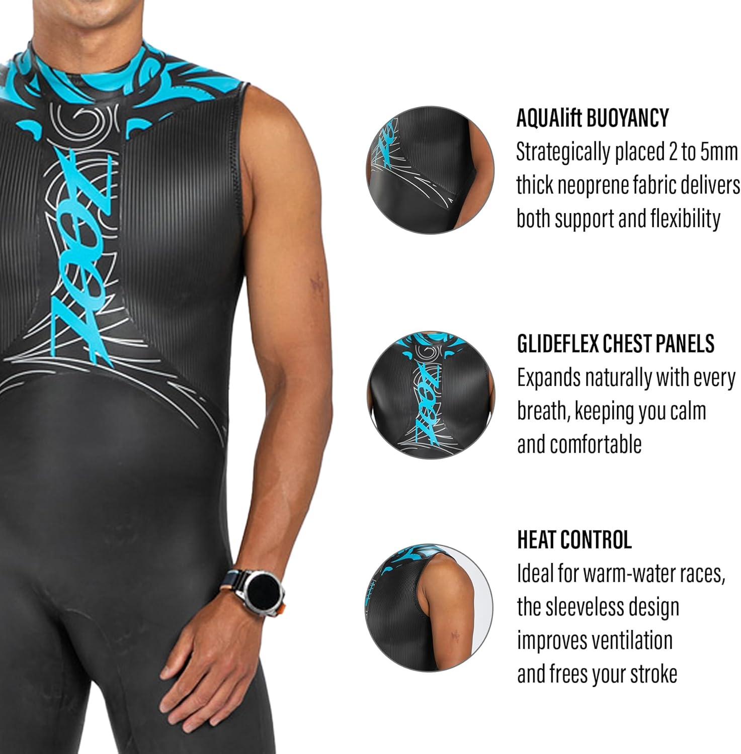 UNRESTRICTED MOVEMENT & COOLER TEMPS: The sleeveless cut provides complete freedom of movement in the shoulders and arms, allowing for a natural, unencumbered stroke. Ideal for triathletes training or racing in warmer waters, this suit enhances body heat regulation without sacrificing performance.