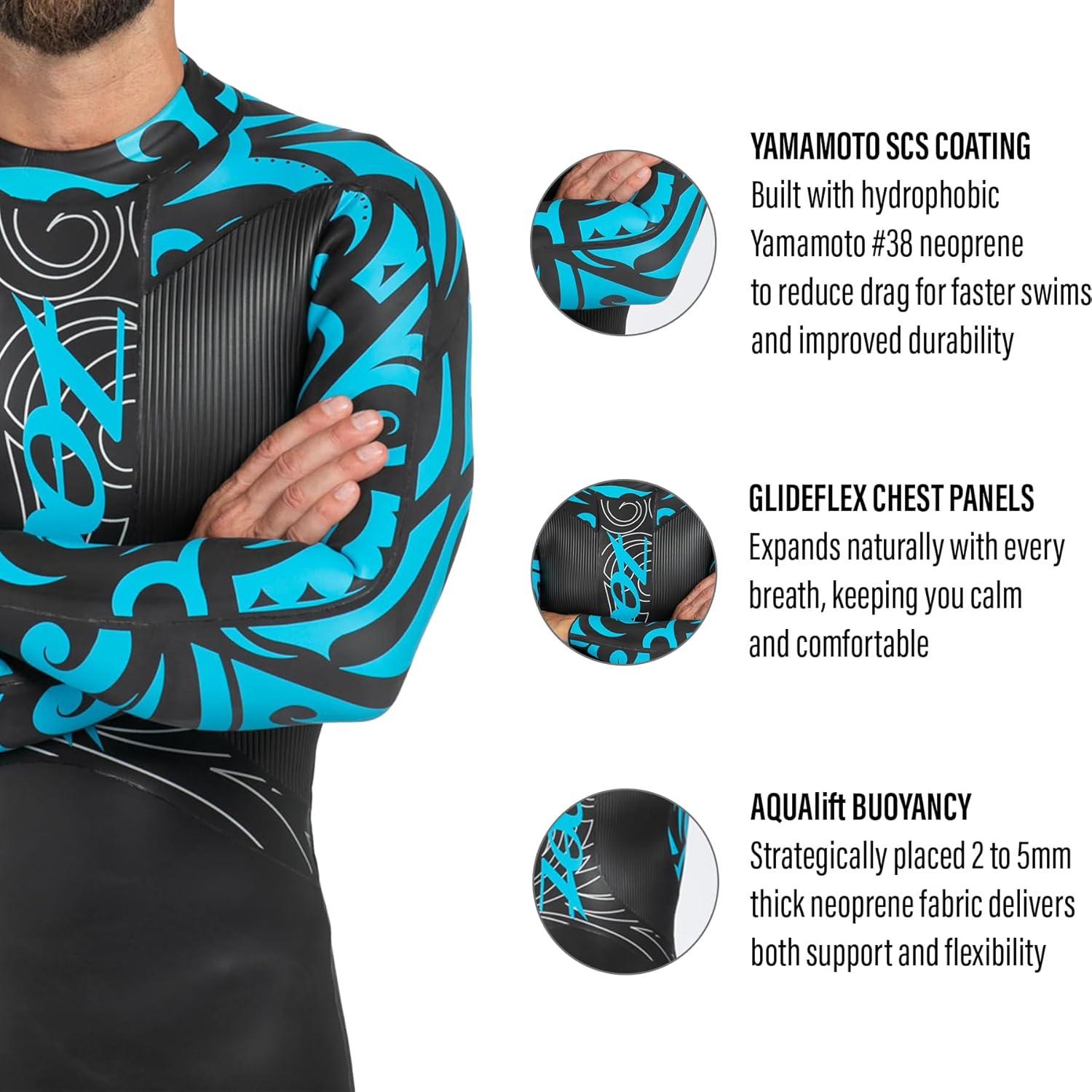 PREMIUM PERFORMANCE FOR OPEN-WATER CONFIDENCE: The Men’s Manta Wetsuit delivers elite-level features in a versatile, athlete-friendly design. Crafted entirely with certified Yamamoto #38 neoprene and SCS hydrophobic coating, this suit drastically reduces drag, enhances durability, and ensures efficient glide with every stroke, whether you're racing or training.