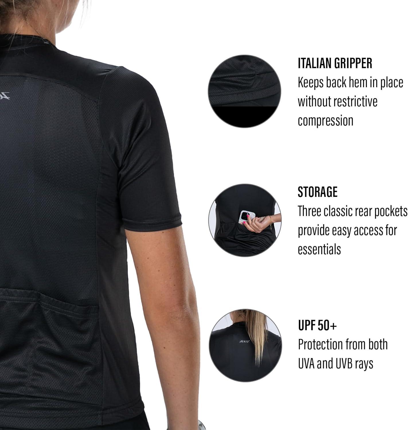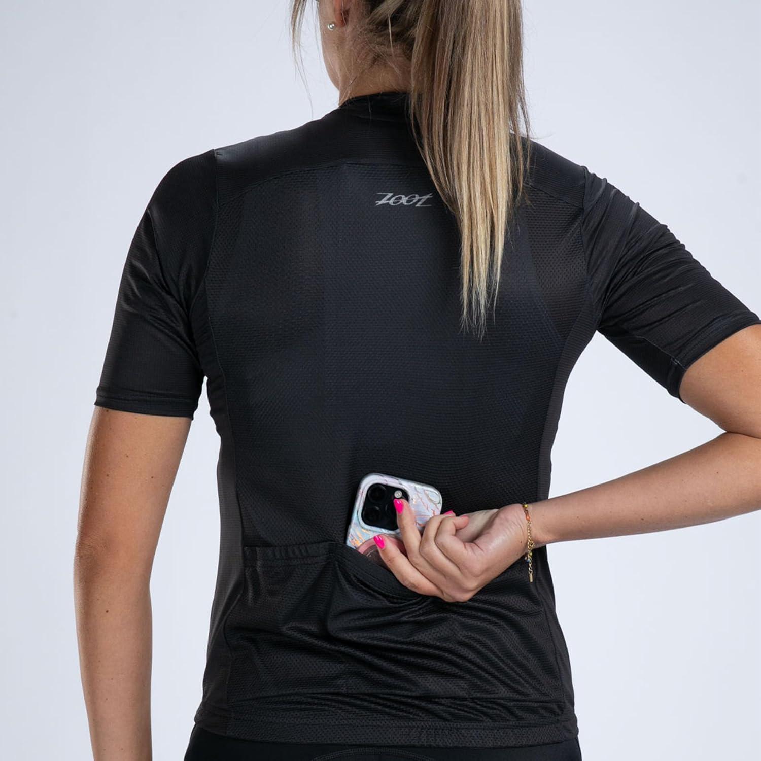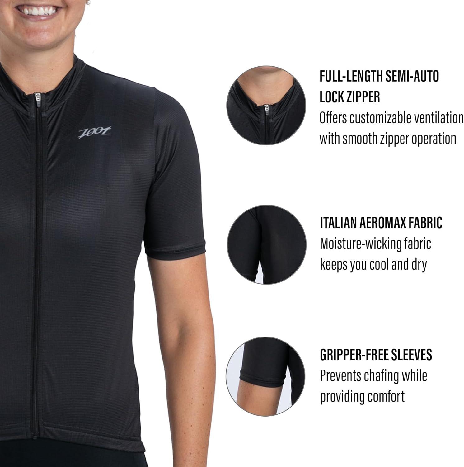 Zoot Women's Core Cycling Jersey, Breathable Short Sleeve Road Bike Jersey, Moisture Wicking, 3 Rear Pockets, UPF 30 Fabric(Jet Black)