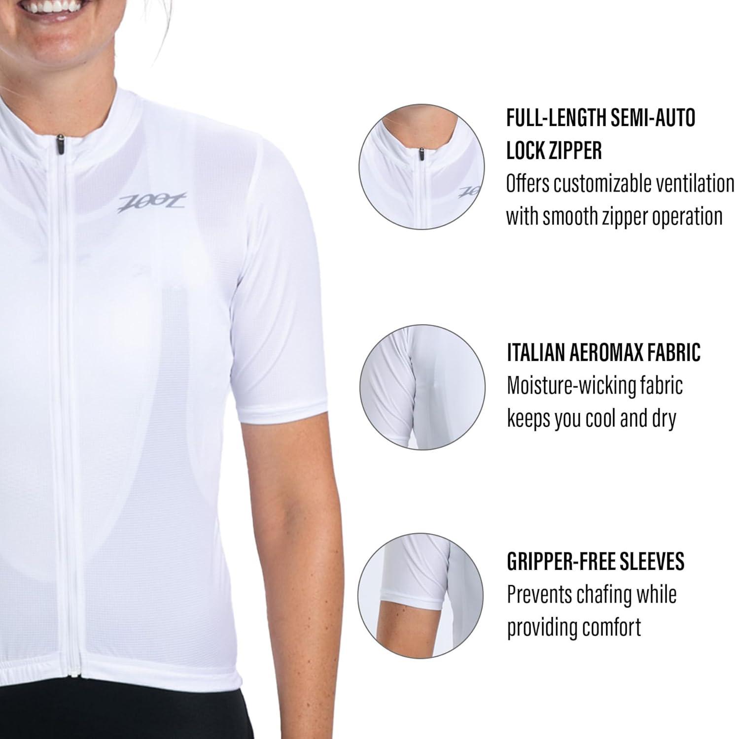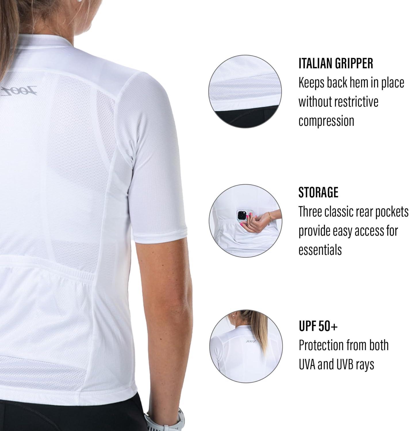 Zoot Women's Core Cycling Jersey, Breathable Short Sleeve Road Bike Jersey, Moisture Wicking, 3 Rear Pockets, UPF 30 Fabric(White)