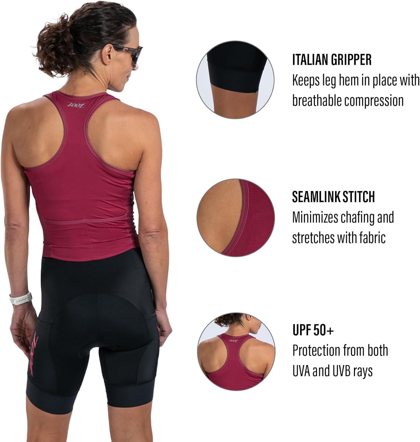 imageZoot Womens Core Sleeveless Tri Aero Slvs FZ Racesuit QuickDry Sleeveless Triathlon Suit with Chamois ampamp Race StoragePlum