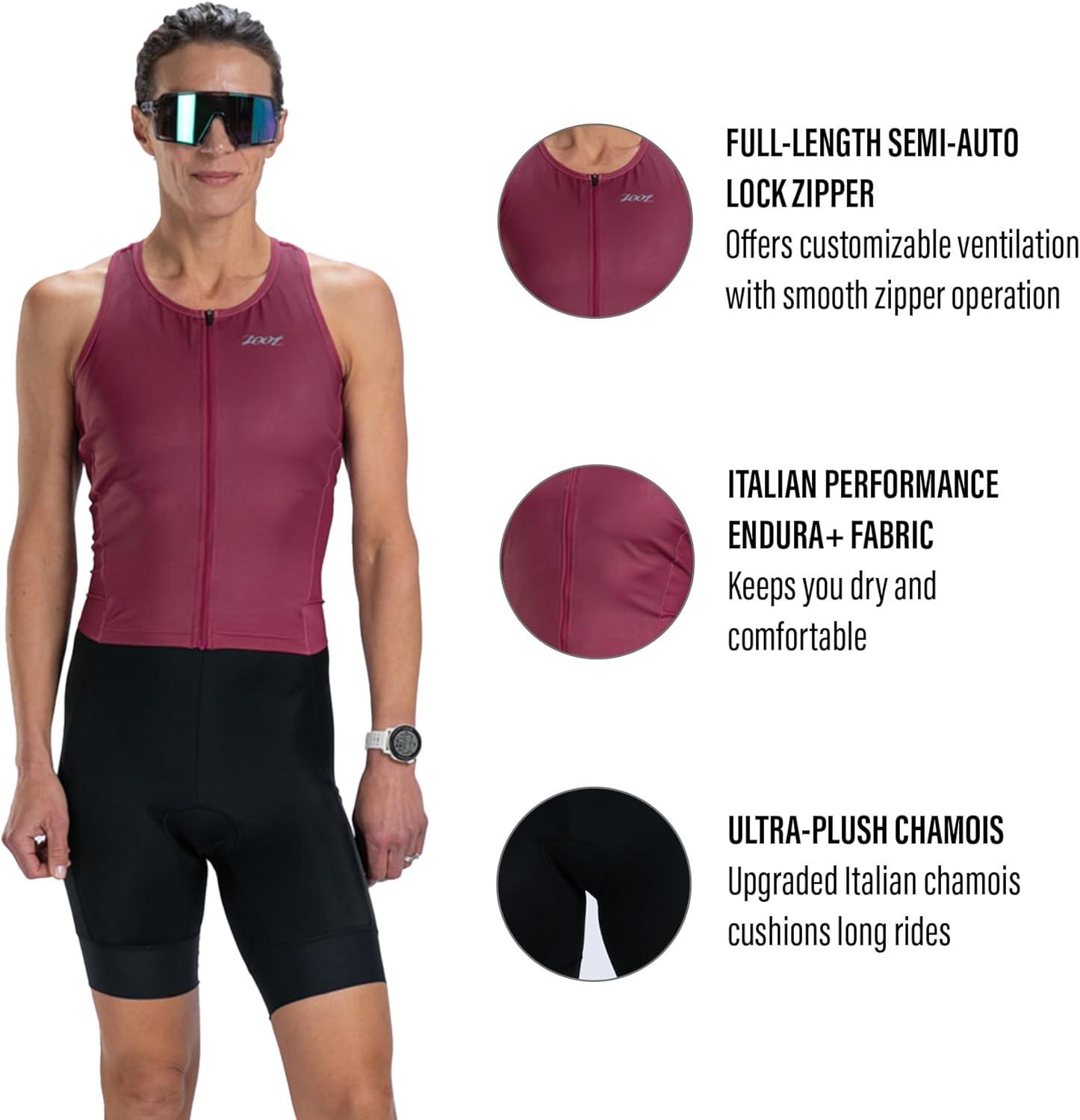 Zoot Women’s Core Sleeveless Tri Aero Slvs FZ Racesuit, Quick-Dry Sleeveless Triathlon Suit with Chamois & Race Storage(Plum)