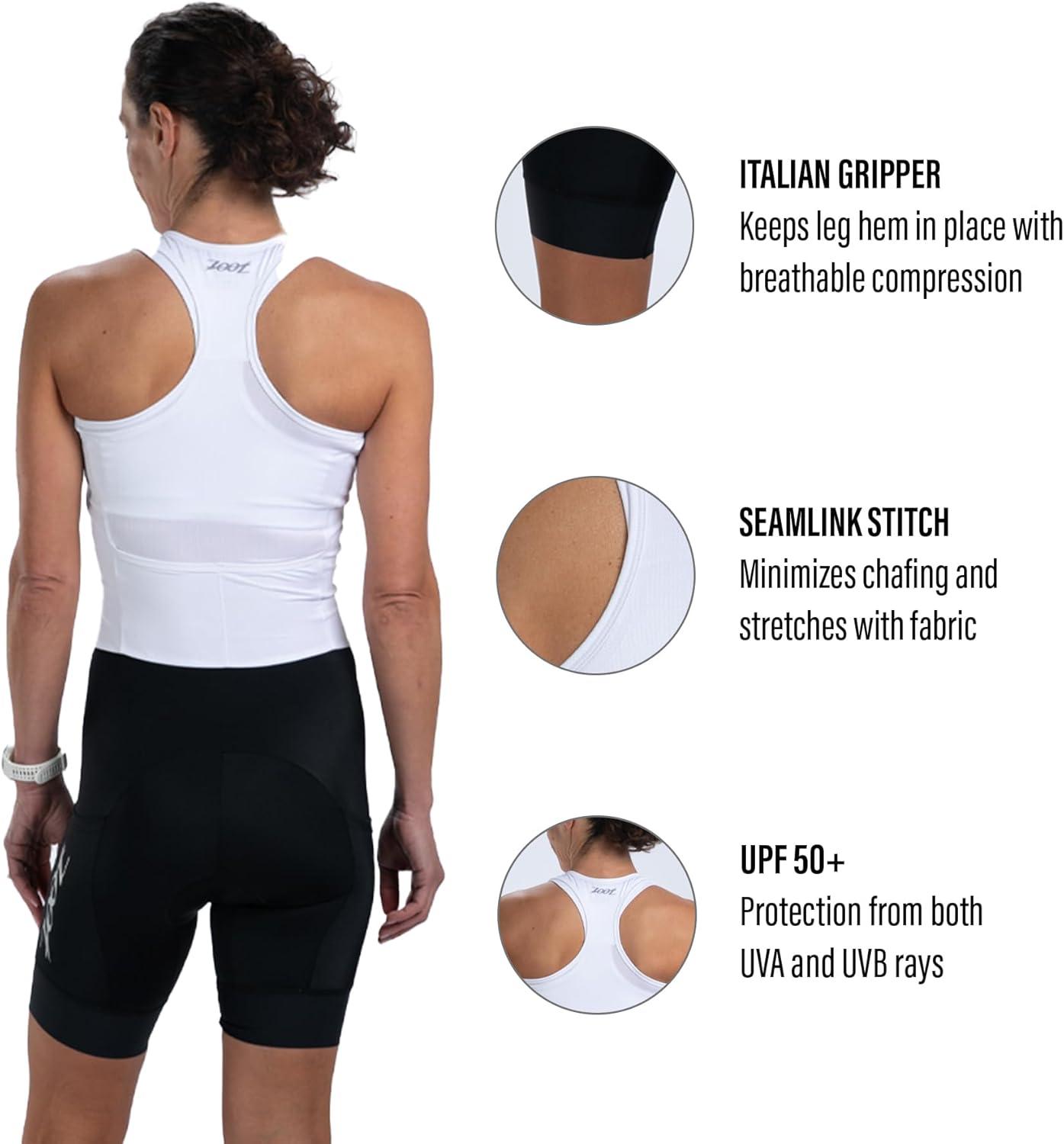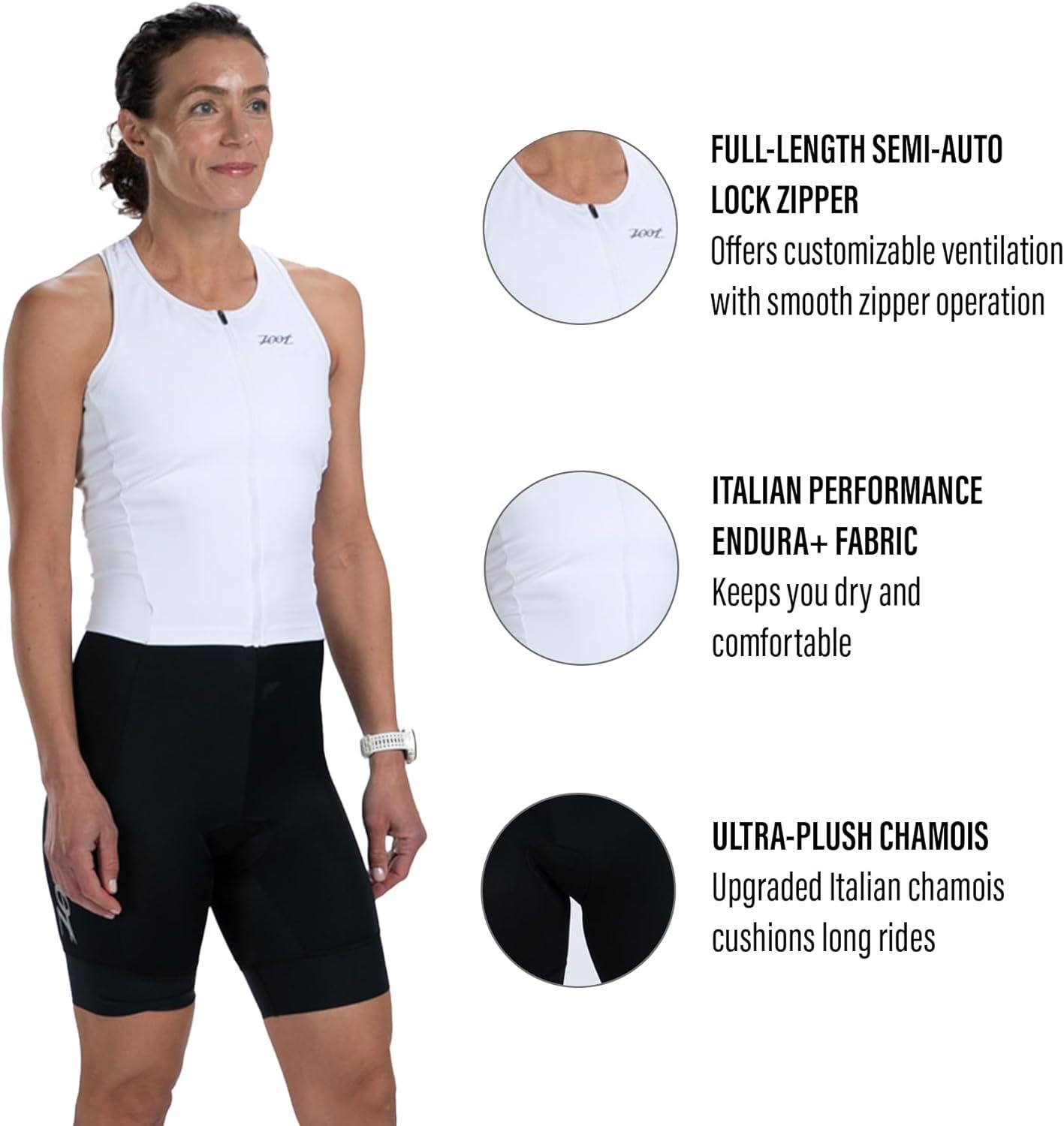 imageZoot Womens Core Sleeveless Tri Aero Slvs FZ Racesuit QuickDry Sleeveless Triathlon Suit with Chamois ampamp Race StorageWhite