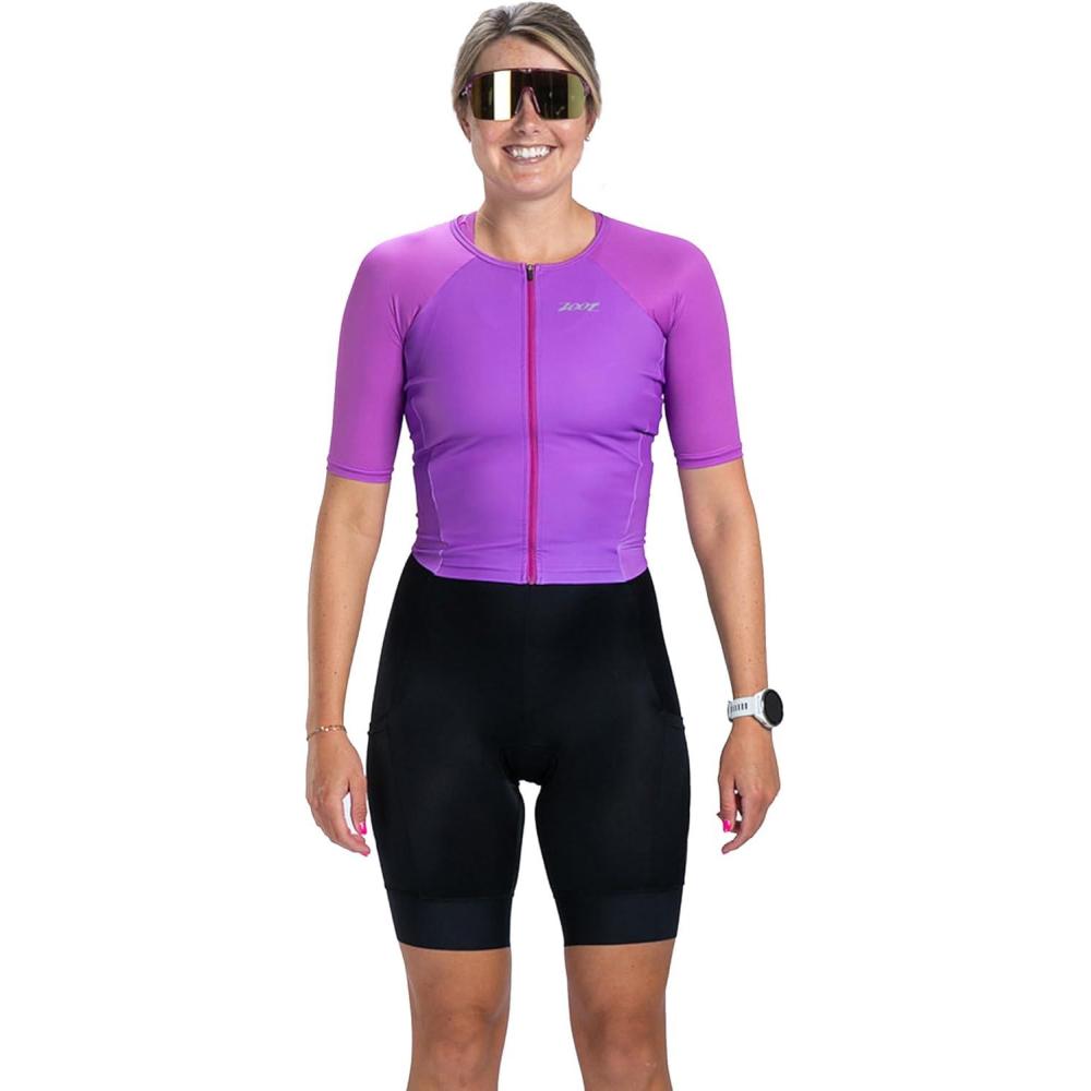 imageZoot Womens Core Tri Aero FZ Racesuit Short Sleeve MoistureWicking Triathlon Suit Plush Chamois ampamp Race Day StorageDeep Purple